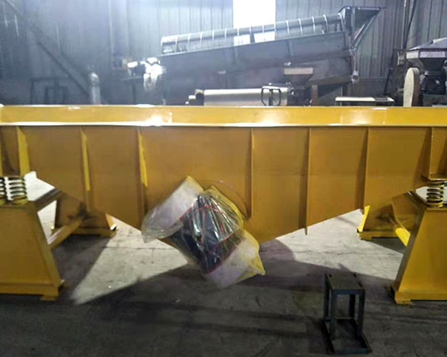 电机振动水平输送机利用料槽的振动使料槽中的物料从入料口快速输送到出料口,可以用来输送块状、颗粒状或粉状、常温或高温的各种物料。电机振动水平输送机有敞开式、封闭式两种,料槽横截面可以做成圆形、矩形和梯形等多种型式。料槽的进料和出料也可根据需要制成一点进料、一点出料,一点进料、多点出料,多点进料、一点出料等多种型式。